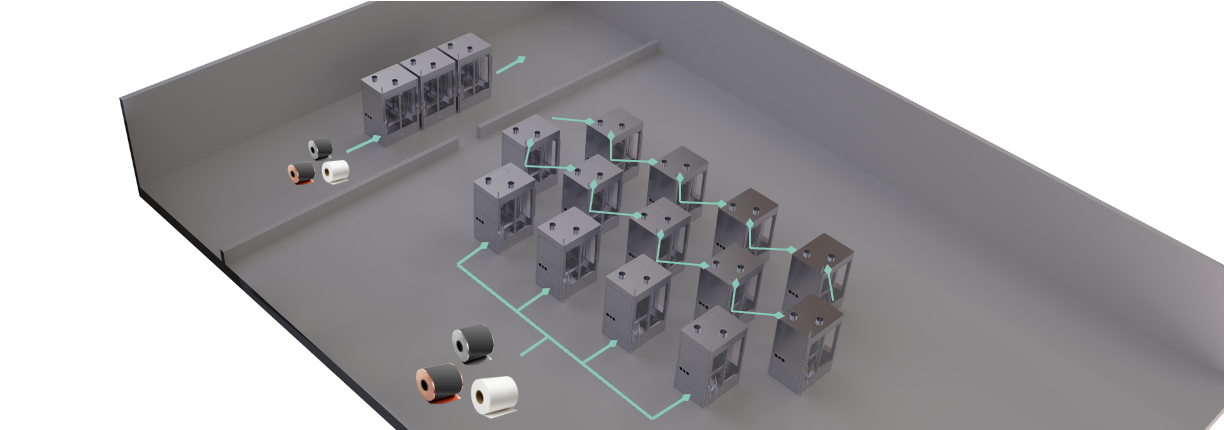 These minienvironments, which replace the need for large and energy-intensive cleanrooms. This modular setup enables rapid adaptation to different product requirements while dramatically reducing space and utility needs.